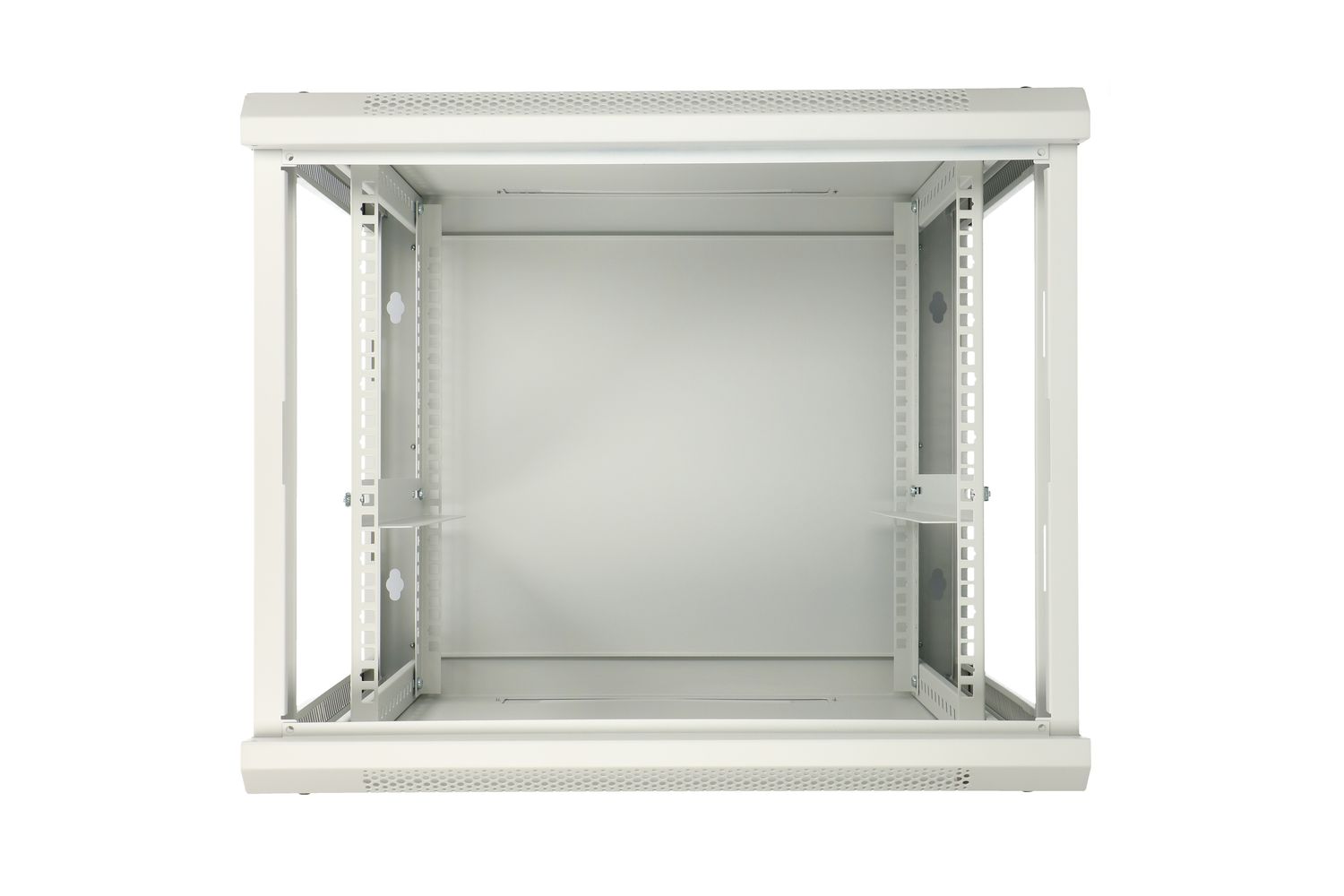 The Extralink rack cabinet is designed for wall mounting in offices, network server rooms and CCTV control rooms. The external walls are made of cold rolled steel. The door can be opened to the left or right side.