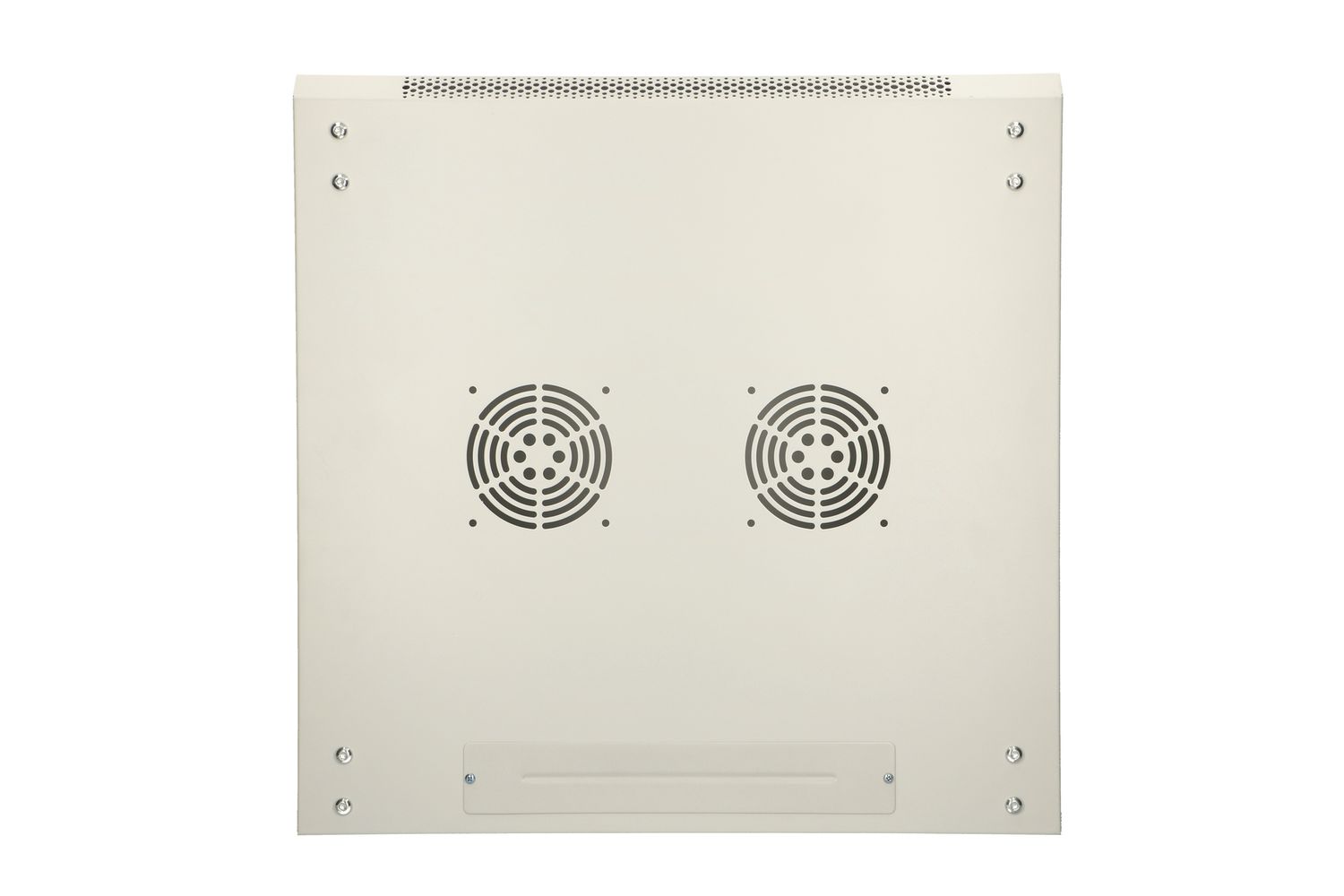 On the ceiling of the cabinet there are 2 places to install fans for better cooling of the devices and additional conduit for pulling out cables.