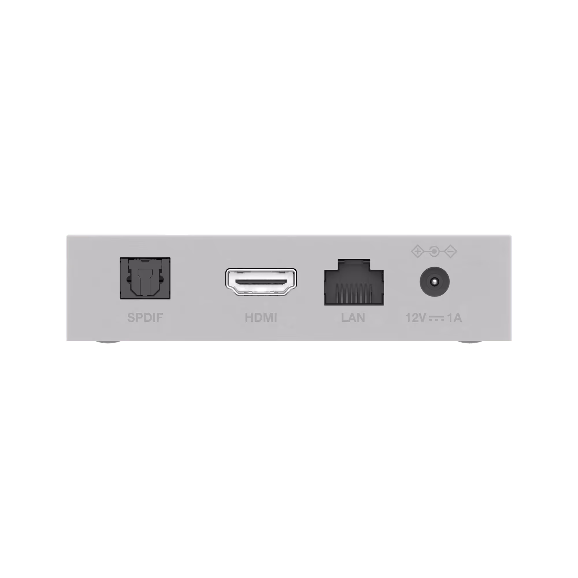 - Connections: S/PDIF, HDMI, USB 2.0, LAN / INTERNET, 12V/1 A DC power adapter, Wi-Fi, Bluetooth