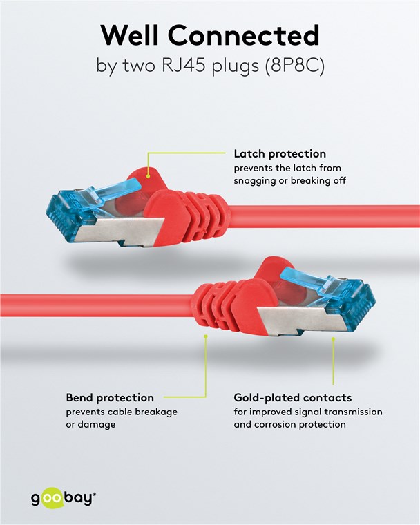 - High-quality copper conductor (CU) and 3µ gold-plated contacts guarantee an excellent, powerful network connection.
